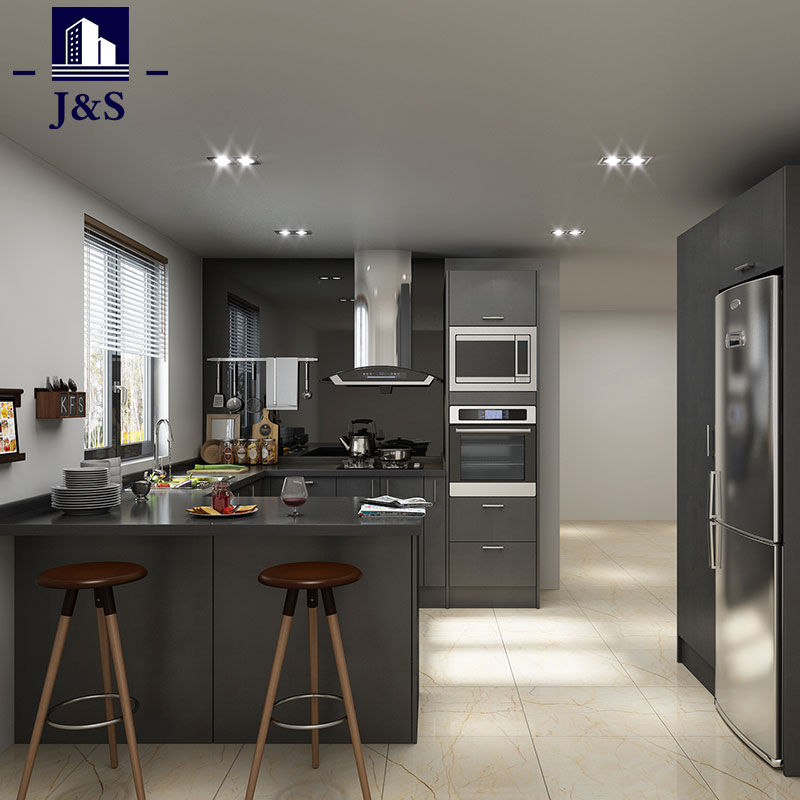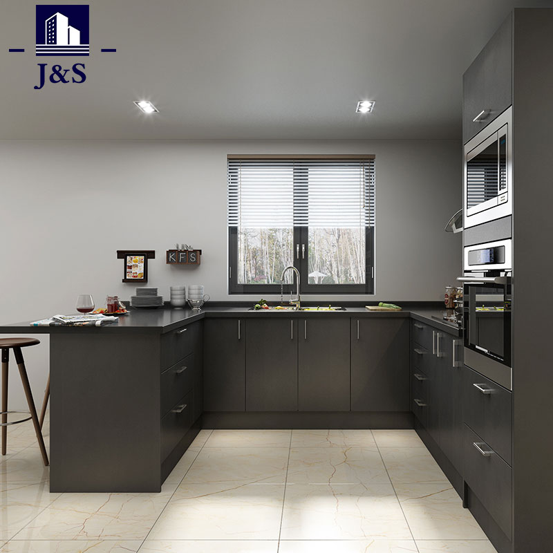 Біз заманауи қара лак ас үй шкафтарын жеткіземіз, бұл су өткізбейтін және сызаттардан қорғайтын PE және PU лакпен қапталған тұтқасыз ас үй дизайны.